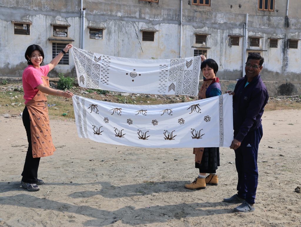 丸二日をかけて、ダブと藍染の全工程が完了しました。他の地域と大きく異なるのは、染色のプロセスが太陽の熱に強く依存している点です。天日干しは極めて重要な工程であり、霧が出たり天候が悪かったりすると作業はストップしてしまいます。また、土を防染糊として利用する点も非常にユニークです。これは日本の米糊や沖縄の糖糊と同様、その土地の産物の特性を活かした染色技術の証と言えるでしょう。